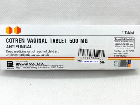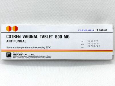 Cotren Vaginal Tablet 500 mg contains Clotrimazole is available in Kepong. It is an antifungal medication used for infections caused by fungi, mainly Candida albicans (vaginal yeast infection).